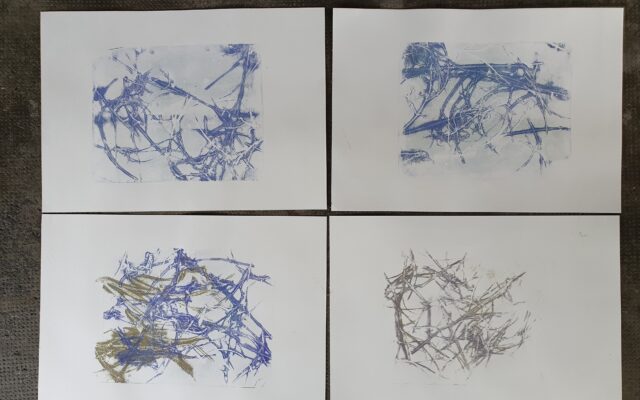 Wir begeben uns auf Spurensuche und kommen uns dabei selber auf die Spur. Wir suchen und finden Linien und Streifen, wir drucken mittels Papierlithografie und Ölpause-Druck jeden Tag unsere neuen Liniengespinste. Dabei…