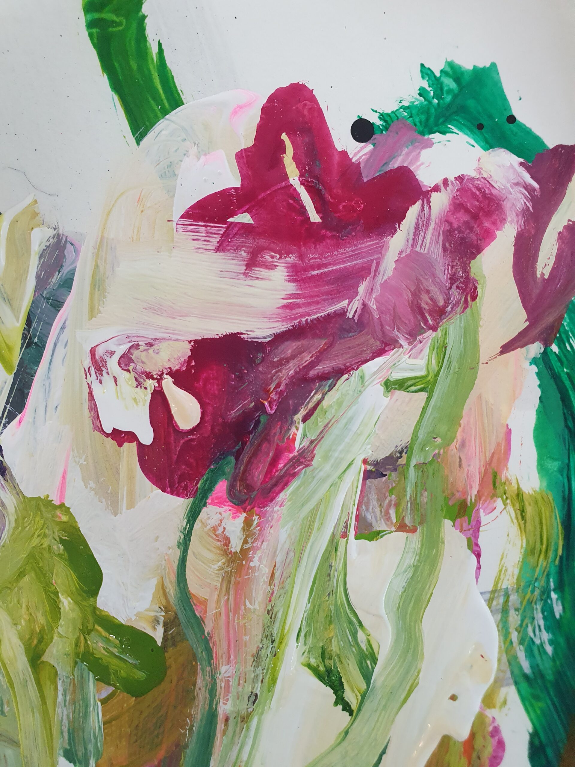 Unsere Kunst treibt Blüten! Mit Pinsel und kräftigen Farben zaubern wir bunte und wilde Blütengebilde auf’s Papier. Wir starten zuerst mit einer Serie im kleinen Format ( ca. A6 Format) und dann sind wir mutig genug und wagen uns an ein grosses Format von ca. 40×40 cm.